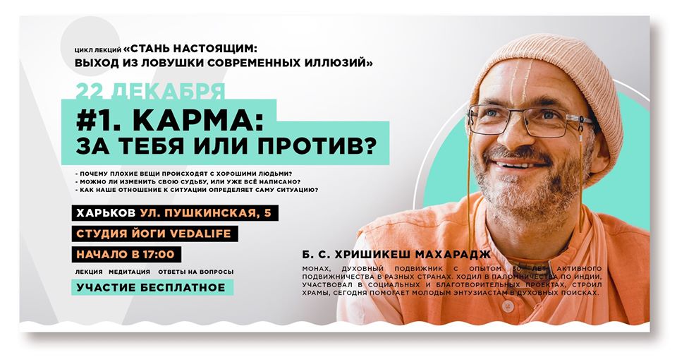 Друзья, приглашаем вас на лекцию Хришикеша Махараджа из цикла «Стань настоящим: выход из ловушки современных иллюзий».