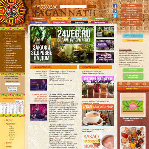Кафе «Джаганнат» – уютное место для ценителей вегетарианской кухни и всех, кто любит оригинальные, полезные и экзотические блюда. Джаганнат основан в 2000 году. Посетить наше кафе можно в шести разных местах столицы: недалеко от станций метро Тверская, напротив метро Курская, рядом с Китай-Город, Таганская, Кузнецкий мост и напротив метро Проспект Мира. А также вы найдете кафе и магазины в Санкт-Петербурге, Сочи, Новосибирске, Томске и Великом Новгороде. Кухня «Джаганнат» – международная, воплощающая традиции Индии, Европы, Таиланда, Мексики и Китая. Здесь вы найдете интересное общение, яркие вкусы и пропитанное духом Востока настроение.